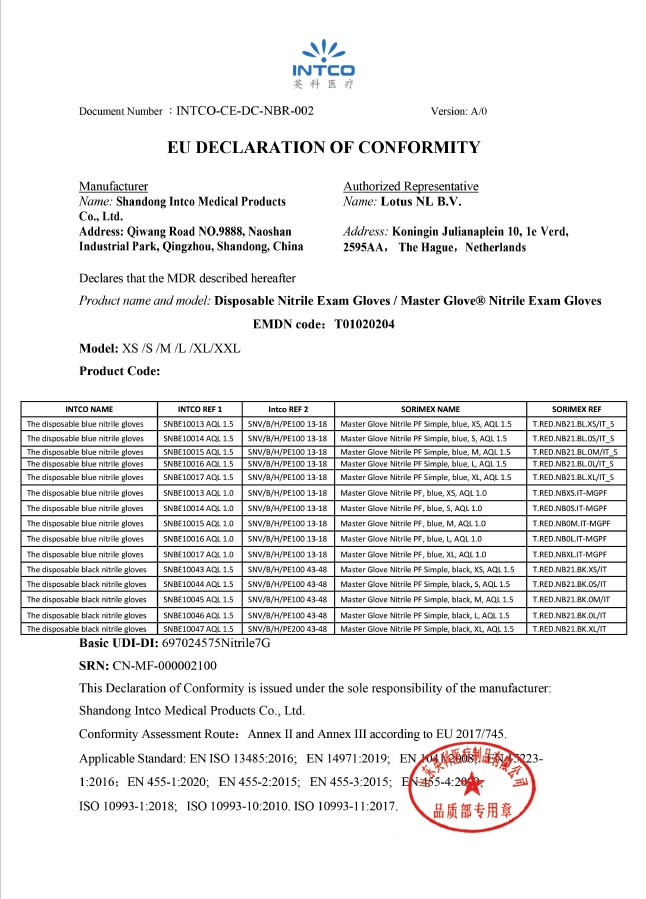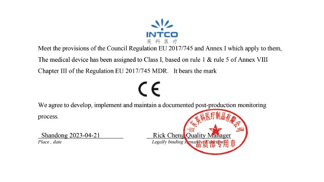 Podpisano v imenu: Shandong Intco Medical Products Co., Ltd.