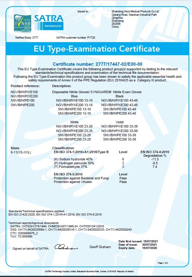 21420:2020; EN ISO 374-1:2016+A1:2018; EN ISO 374-5:2016