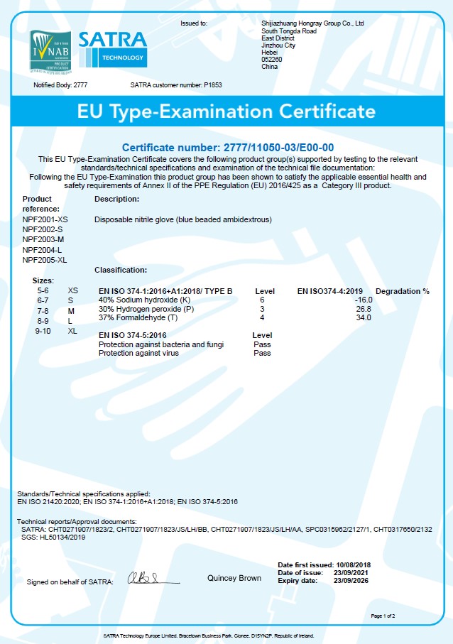 EN ISO 21420:2020; EN ISO 374-1:2016+A1:2018; EN ISO